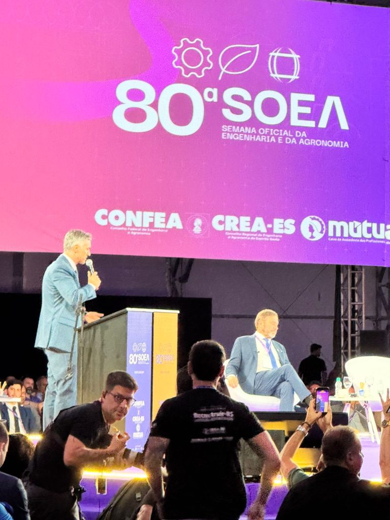 É a AEACJ presente na 80ª SOEA em Vitória no ES! Nosso Presidente Eng. Rogério Balsante participa! A SOEA é promovida pelo Sistema Confea/Crea e Mútua e, em 2025, chega à 80ª edição com o tema “Projetando Caminhos para o Futuro do Brasil”. O encontro acontece de 6 a 9 de outubro de 2025, no Pavilhão de Carapina, município da Serra, Região Metropolitana de Vitória (ES). Mais de 200 palestrantes e cerca de 300 horas de programação técnica para profissionais e estudantes. Painéis, debates, exposições tecnológicas e visitas técnicas a indústrias e empresas inovadoras do Estado do Espírito Santo.